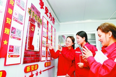 胜利石油工程公司在基层一线设置有声图书墙,用员工喜闻乐见的形式强化理论武装,加强思想引领。张 玉 摄