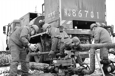 中原油田濮东采油厂庆祖采油管理区干部员工抓实各项冬防举措,以“三低井”为攻坚对象,定期采取热洗地面管线降压伴输措施,目前已实施6井次,确保“三低井”冬季生产平稳运行。图为2022年12月26日,庆祖采油管理区生产指挥中心员工在庆36井热洗地面管线。赵奕松 摄 李道领 文
