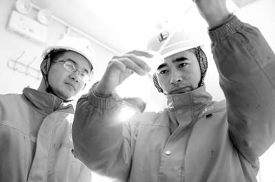 1月23日,华东石油局页岩油风险探井海页1HF井用高性能水基泥浆顺利完钻。页岩油气开发大部分采用油基泥浆钻井,随着环保及经济开发要求的提高,石油工程技术研究院开发页岩油气高性能水基钻井液SM-ShaleMud体系,并派博士到现场进行技术指导,实现经济效益与环保效益的双赢。图为高书阳博士(右)和同事在海页1HF井检测泥浆性能。沈志军 摄