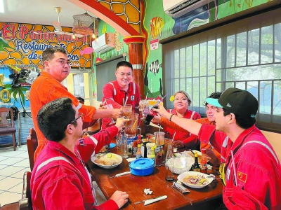 经纬胜利地质录井公司墨西哥项目负责人范瑞宝邀请外籍员工一起过春节。韩 伟 胡安·拉蒙 摄影报道