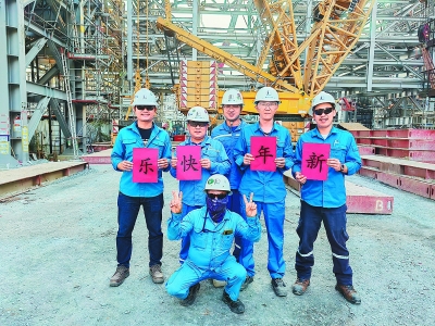 十建公司泰国石油清洁油品项目部中外员工一起庆祝春节。刘旭慧 摄