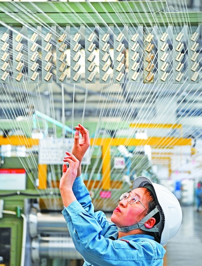 ▲仪征化纤生产的芳纶纤维、超高分子量聚乙烯纤维广受市场欢迎。1月以来,他们狠抓装置安稳运行,持续做好提质降本和拓市扩销工作,这两大高性能纤维产品销量保持增长。图为2月1日在力纶装置生产现场,工艺人员检查丝束质量。刘玉福 摄