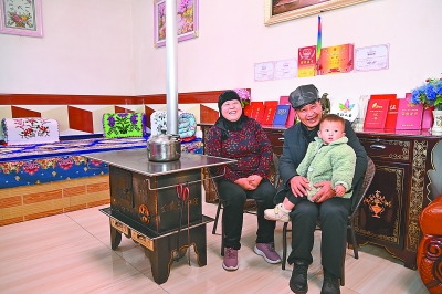 布楞沟村村民马麦热在夫妇和一岁半的小孙子在一起,其乐融融。