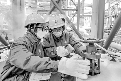 面对冬季蒸汽使用量持续高位的情况,扬子石化热电厂查找无效伴热区域,开展内漏阀门攻关,优化疏水器运行,减少跑冒滴漏,减少散热损失,年节约成本200万元。图为2月3日该厂操作人员对蒸汽排凝系统进行调整优化。李树鹏 摄 张皓阳 文