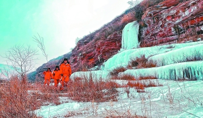 华东石油局延川南煤层气田位于山西临汾境内,进入供暖季以来,他们加强生产平台、集气管线等巡检,加快新井投产,确保每天近百万立方米天然气安全外输。图为2月7日气田员工在沟壑间巡检。本报记者 沈志军 摄 吴海军 何瑞清 文