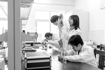 江汉石油工程环保技术服务公司瞄准生产与发展需求,自主研发设计一套独特的热蒸馏工艺流程,实现了对油基岩屑的无害化处理,填补了中国石化页岩气开发过程中油基岩屑大批量无害化处理技术空白,助力涪陵页岩气田清洁高效开发。图为科研人员对油基岩屑处理后分解出来的水进行水质分析。罗 爱 摄