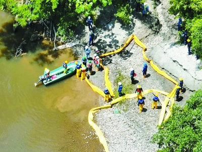 图片新闻:为切实检验提升溢油应急响应能力,日前,国勘厄瓜多尔安第斯项目和当地油公司在T区块开展溢油应急联合演习。 此次演习模拟T区块长输管线60公里处发生地质塌陷导致管线损坏,并造成原油泄漏。T区块营地安保中控室接警后,及时上报现场事件指挥官,指挥官通知关闭外输泵,上报总部并启动危机管理会议。应急队伍抵达事发地点后第一时间在现场布控,用吸油毡设置围堰,协调罐车回收溢出原油。鉴于当地多雨天气,为防止溢油流淌至河流并扩散,应急队伍乘坐冲锋舟在下游河流设置围油栏。演习圆满完成,共用时4小时。 殷焕召 冯明辉 徐 健 摄影报道