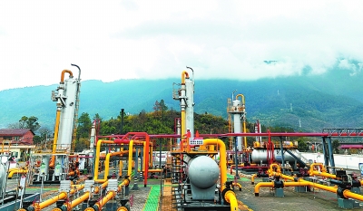 位于重庆南川的华东石油局南川页岩气田积极采用控液提砂、高强度加砂等工艺,持续加快施工节奏、将产能转化为产量,今年以来累计生产页岩气1.9亿立方米。图为2月14日,气田员工在东胜脱水站巡检。本报记者 沈志军 摄 何能举 刘 婷 文