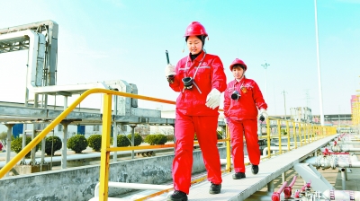 3月8日是国际劳动妇女节。一直以来,中国石化女员工积极投身新时代发展大潮,在安全生产、能源保供、产业转型等各个领域各条战线勇挑重担、奋勇争先,在推进公司高质量发展中彰显了巾帼担当。 图为3月6日,中原油田天然气处理厂第二气体处理厂女员工在现场巡检。丰建法 摄 杨 敏 文
