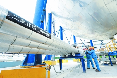 齐鲁石化精心维护百万吨级CCUS装置安全稳定高负荷运行,组织好二氧化碳产品装车出厂,实现良好社会效益。图为当班员工细心调整工艺参数,保障装置安全平稳运行。王敬华 摄