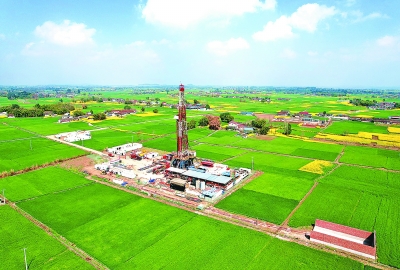 西南油气分公司抓住春季生产黄金期,强化生产运行衔接,加快高效上产步伐,今年以来天然气产量同比增长6.2%。图为3月13日,该公司新沙212HF井进行钻井作业。王 平 摄 杨高全 文