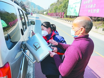 小图为姜林芳(左)为顾客送油。