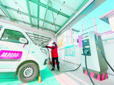 今年以来,江苏石油积极开拓新能源市场,优化业务结构,实施联动营销,推动充换电业务发展。截至目前,累计充换电量达800万千瓦时,居销售企业首位。图为员工为进站车辆充电。仇景宇 摄 何 康 文