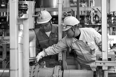 3月以来,扬子石化聚焦降低运行管理成本,诊断现场低效运行问题,优化乙烯裂解炉运行,攻克EVA装置在线切换难题,减少能耗物耗。图为EVA装置员工在现场查找问题。达 军 摄