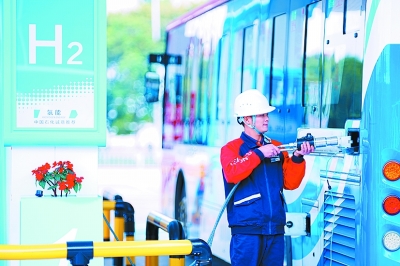 中国石化驻粤企业认真贯彻落实习近平总书记关于广东工作的系列重要讲话精神,把保障能源供应作为首要任务,持续推进高质量发展,为服务粤港澳大湾区经济社会发展作出积极贡献。 中科炼化紧盯广东当地市场需求,充分发挥炼化一体化优势,优化资源调配,强化产销衔接,努力增产优质产品,一季度原油加工量超计划完成。左图为该公司常减压装置。 林江海 摄 吴金梅 文 广东石油大力推动环大湾区氢能供应网络建设,现已建成9座油氢合建站,为当地经济发展提供清洁能源保障。下图为佛山石油佛西综合加能站员工为氢能公交车加注氢气。黄剑豪 摄 黄嘉莉 文