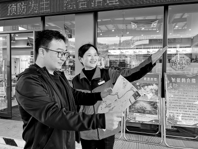 今年以来,浙江石油顺应旅游行业复苏态势,满足游客多方位服务需求,拉动易捷服务业务增长。一季度成品油销量同比增长2.3%,易捷商品销售额同比增长12%。图为金华石油长征加油站为客户提供横店影视城旅游指导。