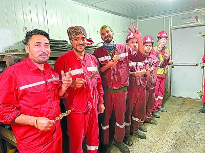 为了能让员工在中东沙漠也能吃上国内的网红美食,项目部做了充分的准备。倒班的员工从国内不远万里背来了小烤炉、酱料;厨师马师傅凌晨起床和面,跟着手机视频摸索了一整天,在现场的厨房制作了400多张小饼;营地经理从当地市场采购来最新鲜的牛羊肉,再配上从自己队上小菜园里采摘的新鲜小葱。万事俱备、启炉烧火,丰盛的美食端上了海外员工的餐桌。“淄味”在舌尖,暖意在心间,“虽然深处异国,吃的却是咱家乡的味道”。