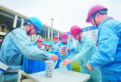 2023年5月底,扬子石化大检修期间,行政事务中心组织人员向员工和承包商送上精心烹饪的600份红烧肉,让他们共享舌尖上的“盛宴”。为做好慰问工作,行政事务中心优选高品质猪肉,严把加工关,提前分装打包,确保大家吃得安心、放心、舒心,一份份诚意满满、美味可口的红烧肉获得现场施工人员的好评。王 蕊 摄