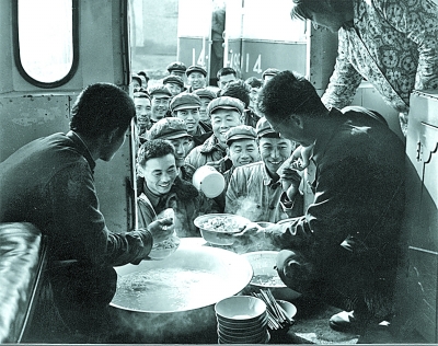 1978年,伴随着改革开放的春风,胜利油田的石油勘探开发大会战如火如荼展开。在河口油区,随着义和庄油田的发现,陆续打出多口千吨井,胜利油田进入第一个原油产量高峰期,并建成我国第二大油田。图为胜利油田河口指挥部的服务队员把热气腾腾的饭菜送至会战一线。刘 铁 供图