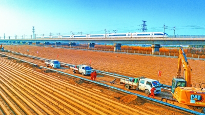 3月7日,齐鲁石化-胜利油田百万吨级CCUS示范项目二氧化碳输送管道临淄区朱台镇施工现场忙碌有序。工作人员加快施工进度,争取让二氧化碳早日坐上“地铁”专列。