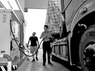 面对高温酷暑,安徽石油落实防暑降温保障措施,优化员工排班,做好劳动保护。全省1600余座加能站员工坚守岗位,坚持服务标准不降、安全管理不松懈、规范操作不马虎。图为7月12日,合肥石油中垾加能站员工在高温天气下为大货车加油。孙德荣 摄