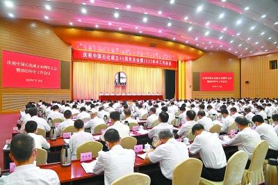 庆祝中国石化成立四十周年大会暨2023年中工作会议现场。