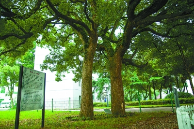 浙江湖州石油苏台山油库平安樟绿意盎然。