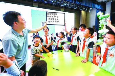 7月15日,扬子石化举办首届“企校手拉手 科普润童心”活动,通过科普视频《奇妙的化学之旅》和化学小实验,带领孩子们探索化学的奥妙。李树鹏 摄 张荣荣 文