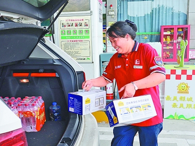 浙江杭州石油桐庐方埠加能站员工送货到后备厢。陈瑞津 摄