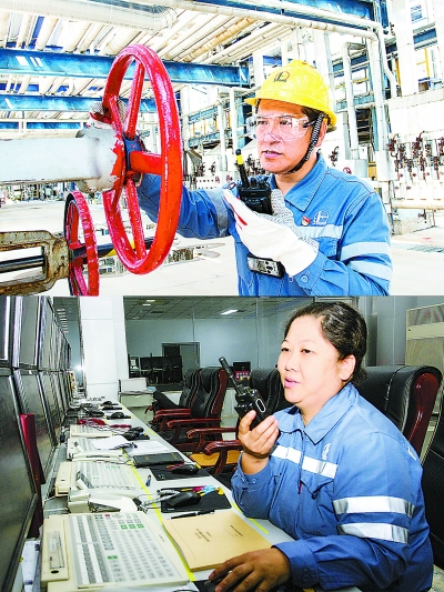 于晓松(左)是外操,张绍锋是内操。两人在各自岗位上要时时密切协作。柴润金 摄