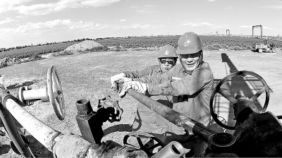 今年以来,河南油田科学统筹采油、科研、地质工程等多条线力量,精心制定实施产能建设方案,有序组织西部工区新井投产运行和老井上产稳产工作。截至8月底,西部稠油热采区域完钻新井28口,投产新井25口。图为春光采油服务队员工紧固井口螺栓。石正文 摄