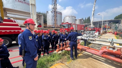 近日,金陵石化消防保卫支队党支部带领队员走进罐区,开展“三知一会”(知现场消防设施位置、知操作流程、知注意事项,会在灭火救援中正确使用现场消防设施)活动,提升全员应急处置能力,筑牢企业消防安全屏障。图为工作人员在讲解操作流程。曾 敏 摄