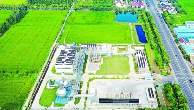 今年以来,华东油气分公司大力发展风电、光伏项目,在苏北工区推进地面、屋顶光伏1.64兆瓦项目建设,目前光伏板安装完毕;在山西临汾工区的延川南煤层气田、重庆南川工区的页岩气田推进首期5兆瓦风电项目建设,全力确保年底竣工。图为苏北工区黄桥新厂分布式屋顶光伏项目俯瞰。沈志军 摄 夏进松 程旺林 文
