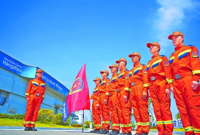 ?镇海炼化消防支队应宁波市应急管理局要求,在宁波象山赛场周边执勤,强化应急保障力量,护航亚运。 何 雯 摄
