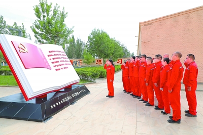员工在企业文化教育基地重温入党誓词。 权向阳 摄