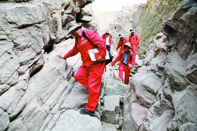 科研人员在野外考察。徐勤琪 摄