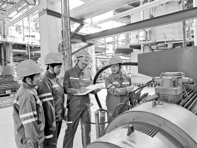 百日攻坚创效专项行动启动以来,荆门石化采取节能技改、优化工艺流程、提高用能设施运行效率等举措,降低炼油能耗。截至目前,炼油能耗同比下降12%,创历史新低。图为10月8日,渣油加氢装置节能项目投用后,生产调度部管理人员检查原料升压泵运行情况。蒲红霞 摄 肖 鑫 文