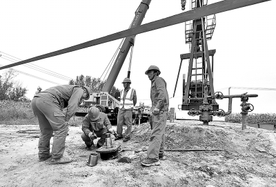 中原油田地面工程抢维修中心从现场管理入手,将定期巡查、设备缺陷管理、隐患排查治理等方面工作做精做细,实现“三基”工作与设备管理、生产运行等工作相融互促。图为10月9日,地面工程抢维修中心胡状采油管理项目部员工正在作业。赵奕松 摄 侯冬冬 文