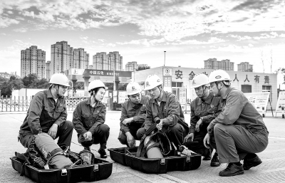 近日,安徽池州石油开展冬季防火防爆安全教育培训,增强员工冬季安全生产意识,提升应对突发问题的应急处置能力。培训以库站班组为最小单元,以冬季防火安全、用电安全,以及冬季设备维护和安全检查等为主要内容。图为11月3日,油库消防班员工学习空气呼吸器的使用方法。 孙宗奎 摄