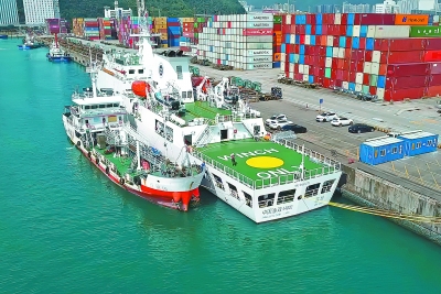 日前,燃料油广东公司作为首航用油独家供应商,历经8小时连续作业,成功为3000吨级海洋维权执法船“中国渔政44002”供应188吨柴油。该船是深圳落实“挺进深蓝”发展战略的重要基础设施,也是我国公务船领域首次申请“智能船舶”符号的船舶。图为供油现场。 谭飞雨 摄 朱亚菲 文