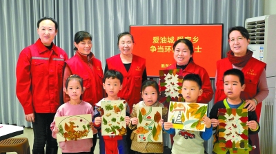 11月17日,胜利油田老年服务管理中心胜东老年服务部组织“五老”志愿者和幼儿园小朋友,开展“爱油城 爱家乡 争当环保小卫士”制作树叶剪贴画活动。 志愿者和孩子们走进大自然,捡拾缤纷落叶。他们向小朋友讲解树叶剪贴画的制作方法和技巧,引导孩子们发挥想象力,创作出了一幅幅栩栩如生的树叶剪贴画。活动的开展不仅培养了孩子们热爱自然、热爱家乡的美好情感,而且将低碳节能的意识深植于孩子们的心中。图为创作完成后,志愿者与小朋友合影。杨 旭 摄 高秀娟 文