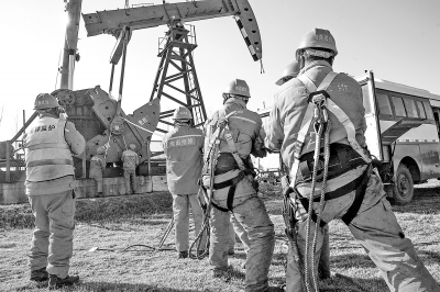中原油田地面工程抢维修中心针对冬季生产运行特点,以“不冻坏一台设备,不冻裂一个阀门,不冻堵一条管线,不发生一次生产事故”为目标,强化冬季安全生产,确保人员、设备安全过冬,油气生产平稳运行。图为12月1日,该中心员工正在消除抽油机基础下沉造成的安全隐患。李 刚 摄