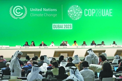 12月11日,阿联酋迪拜,COP28主席苏尔坦·贾比尔在全体会议上发表讲话。视觉中国 供图