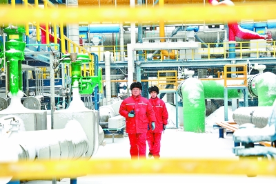 -15℃ 12月14日,天津再次迎来降温降雪天气。天然气分公司天津LNG接收站工作人员密切关注设备负荷变化,顶风冒雪,不间断安全巡视重要线路和设备,及时消除异常,确保恶劣天气下供气安全。王 军 摄