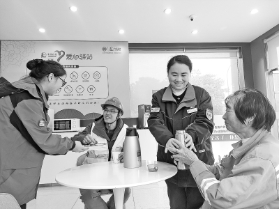 近年来,浙江石油充分发挥网点优势,加快爱心驿站建设,不断完善服务功能,截至12月22日,累计建成爱心驿站535座,其中7座爱心驿站入选全国总工会2023年“最美工会户外劳动者服务站点”名单。图为户外劳动者在浙江嘉兴海盐盐湖加油站爱心驿站休息。董之嘉 摄 舒志国 文
