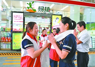 10月,第七届感动石化人物、西藏石油班戈县加油站站长普布卓玛(左),与同届获奖人物、广东深圳石油梅林加油站站长徐静静在深圳相聚。