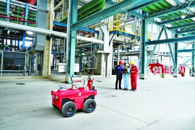 作为被工业和信息化部评为2022年度智能制造示范工厂的企业,中科炼化大力推广“5G+”无人叉车、智能巡检机器人等智能化应用,构建了服务共享、协同智能、集成优化、安全敏捷的信息服务体系,为企业安全稳定高效运行提供了有力保障。图为近日防爆式巡检机器人在EVA(乙烯-醋酸乙烯共聚物)装置区域巡检。 刘理铭 摄 吴金梅 文