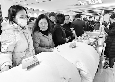 1月12日至13日,仪征化纤开展了终端产品展销文明实践惠民专场活动,为当地市民带来具有仪化特色、质优价廉的终端产品。此次展销活动受到了市民的热烈欢迎,现场人头攒动。图为市民在购买仪征化纤产品。刘玉福 摄 倪 倩 文