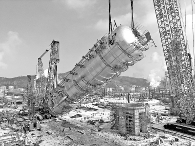 近日,炼化工程集团起运公司使用4000吨履带式起重机在吉林石化完成关键设备的吊装工作。为按时完成极寒天气下的连续吊装作业任务,该公司优化吊装技术方案,重点排查极寒天气对索具的影响,确保吊装过程平稳有序、安全受控。图为吉林石化120万吨/年乙烯装置急冷油塔吊装现场。陈 栋 摄 周文昊 任 术 文