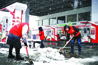 连日来,受寒潮影响,我国南方遭遇大范围降温和雨雪天气。各石化企业扎实开展“百日安全无事故”行动,积极应对雨雪天气,强化设备设施巡检,狠抓冬季安全生产措施落实,确保生产运行安全平稳、市场供应充足稳定。 图1:1月22日湖南湘潭石油韶山东路站员工在清理积雪。 于佳卉 摄 张慧芝 文 图2:1月22日湖南石化员工顶着严寒精心进行巡检操作。 本报记者 彭 展 摄 图3:1月23日西南油气分公司元坝101-1H井站员工开展防冻防凝工作。 薛 婧 摄 覃 潇 文 图4:1月22日浙江温州石油文成百丈漈加油站员工在大雪中引导车辆有序出站。 傅奕佳 摄 赵东瑞 文
